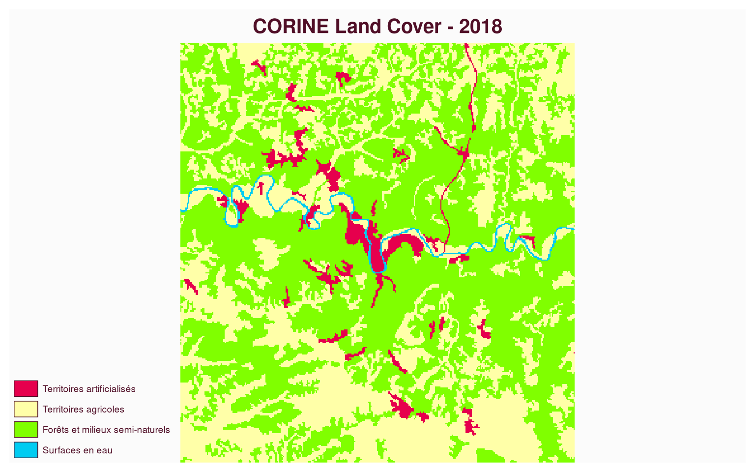 Dans cet exemple nous utilisons les données de CORINE Land Cover (déjà utilisées ici).