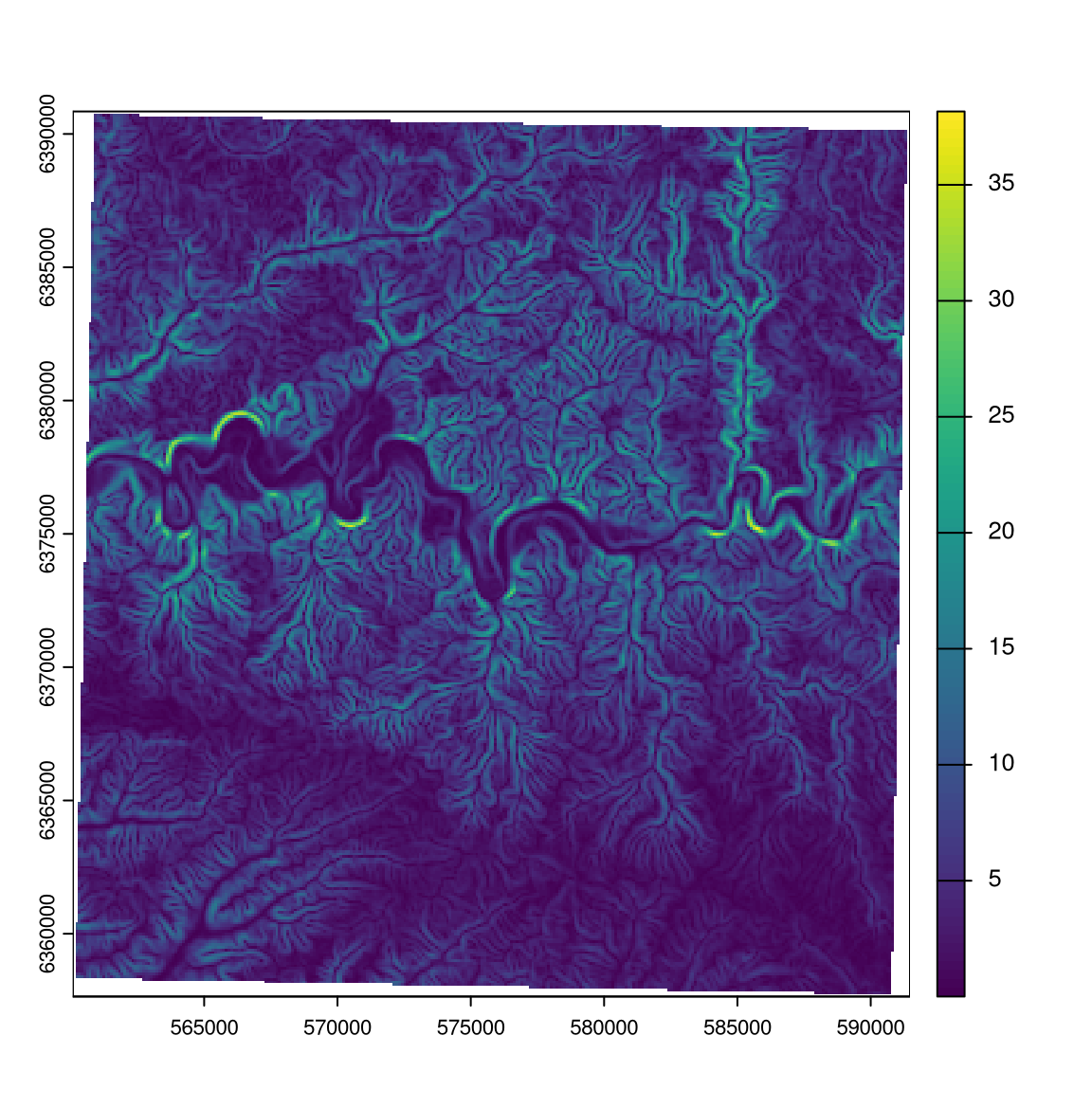 slope <- terrain(elev, "slope",