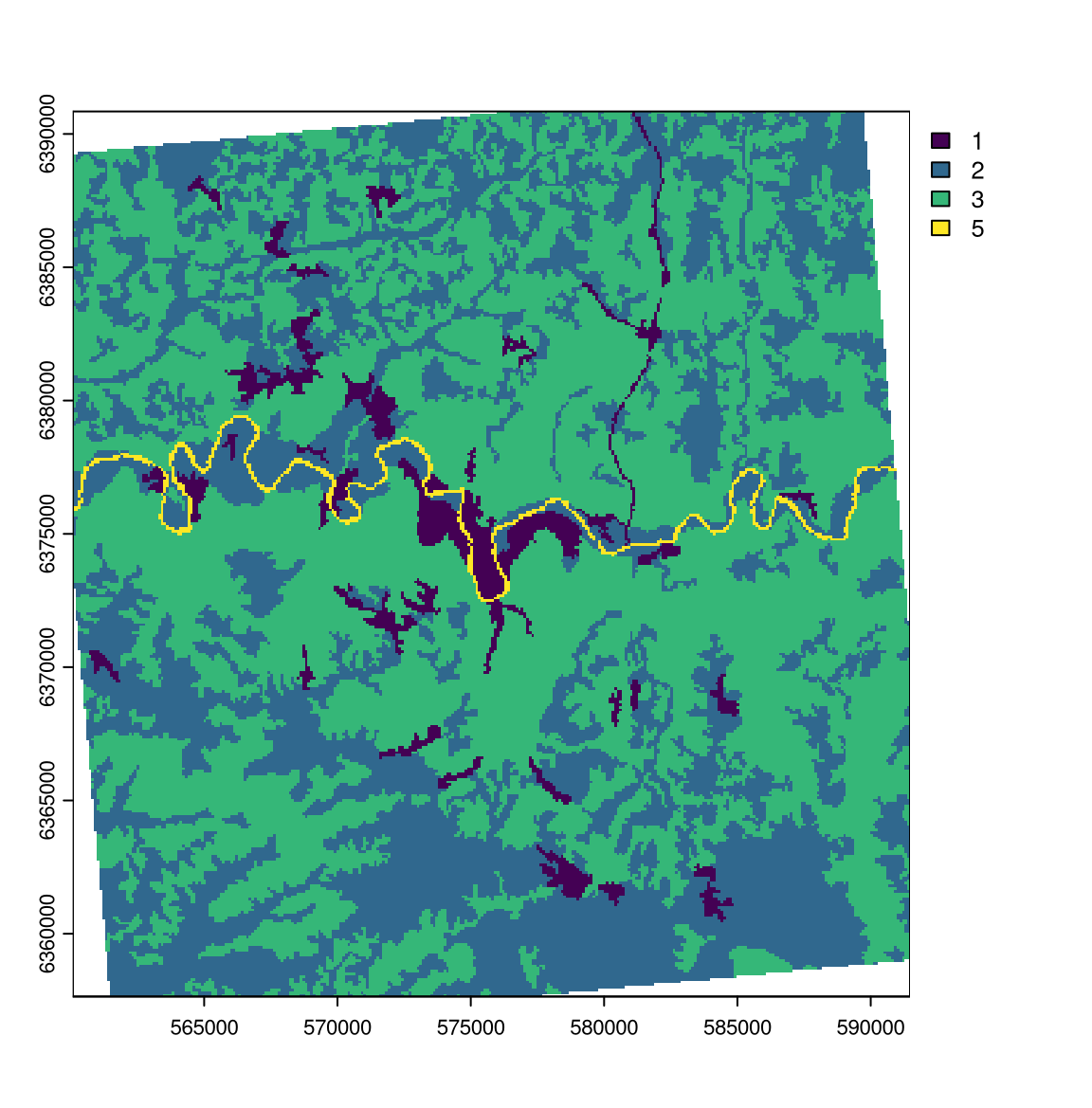 clc_5 <- classify(clc, rcl = reclassif)