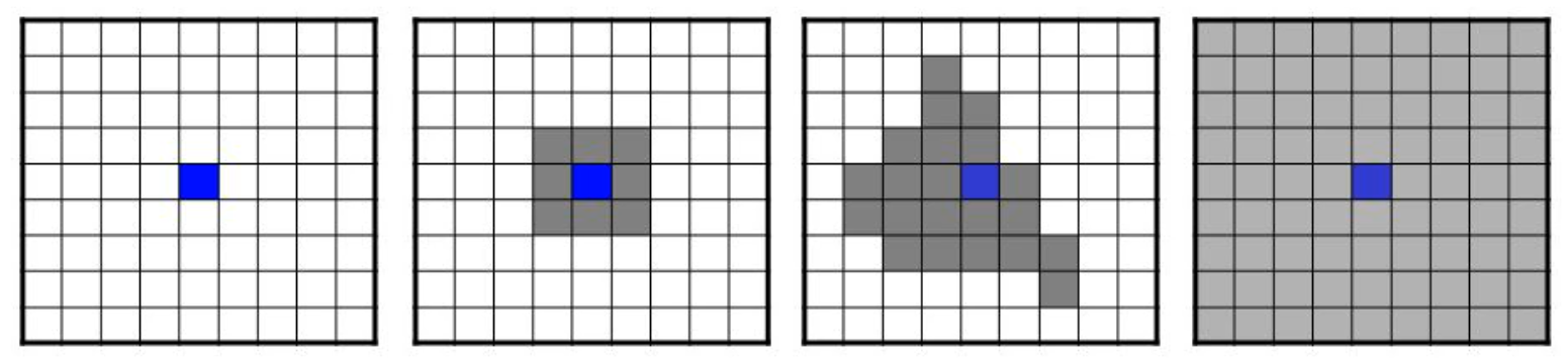 neighbors = 8, # 8 (ou 4) cellules autour pris en compte