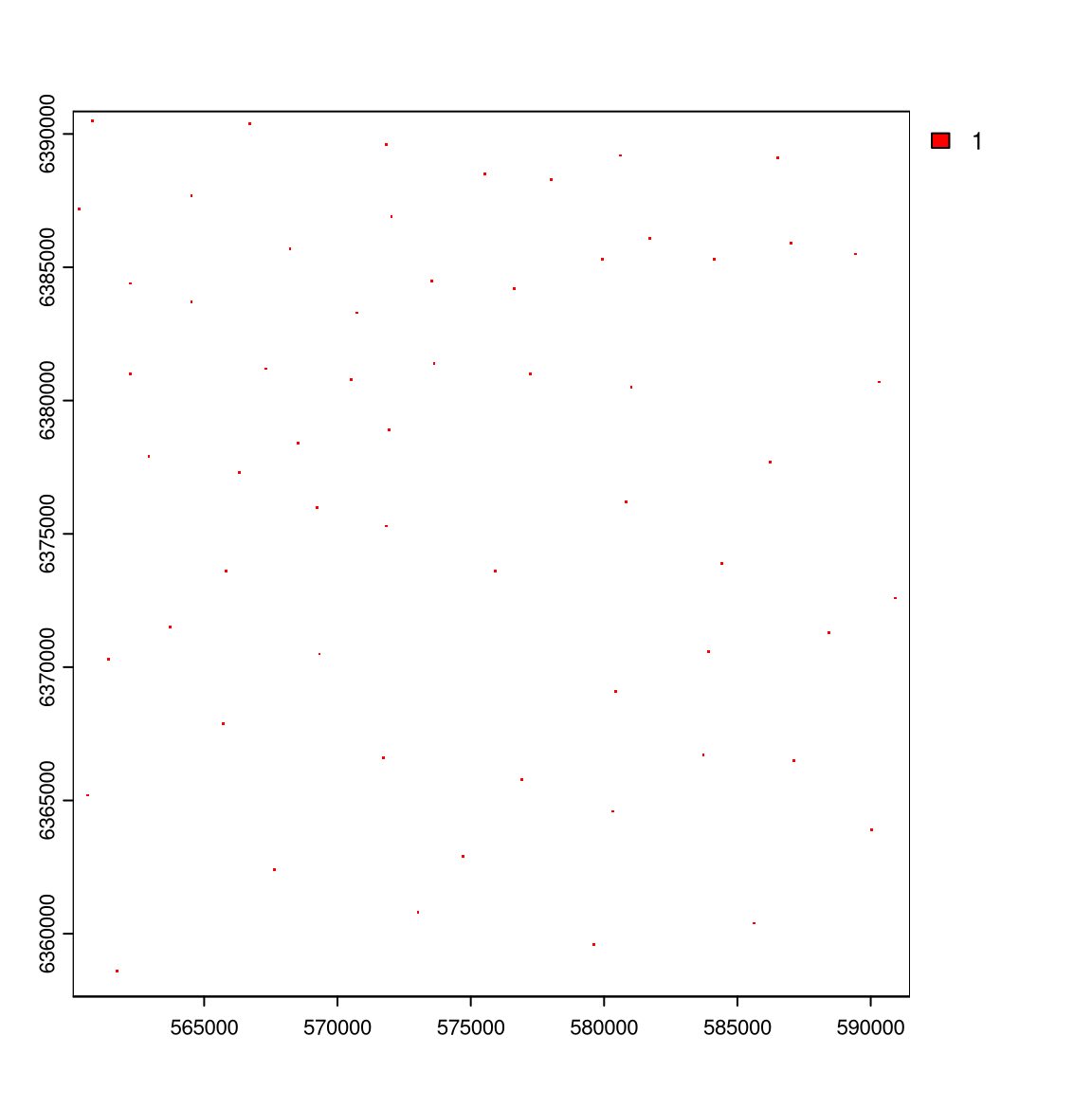 Transformer un raster en points vectoriels avec la fonction as.points():