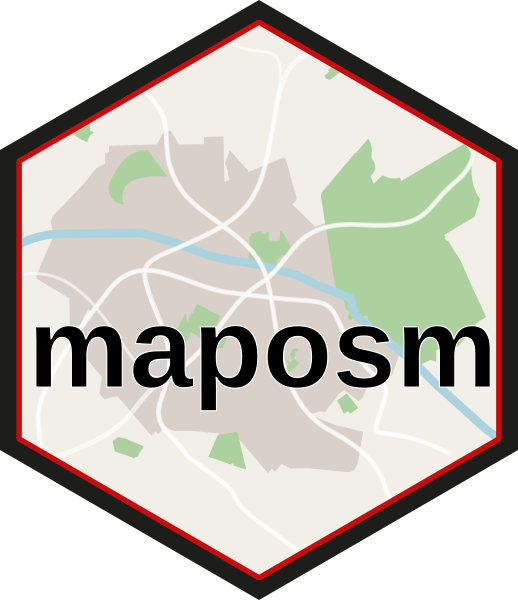 La base de données OpenStreetMap propose de nombreuses couches géographiques très détaillées à l’échelle mondiale. Pour obtenir des informations synthétiques pouvant être utilisées à des fins cartographiques, les couches doivent être sélectionnées, simplifiées, fusionnées ou modifiées. Le package maposm(Giraud, 2025a) fournit un ensemble de couches composites construites à partir d’extractions effectuées avec le package osmdata.